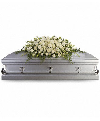 One way to show support is through our Purity and Peace Casket Spray flower bouquet, a beautiful and honorable tribute to the departed. This bouquet features an arrangement of white roses, orchids, hydrangea, calla lilies, and trailing greens that not only pay respects to the deceased but also offer hope, optimism, and sympathy to those who mourn.