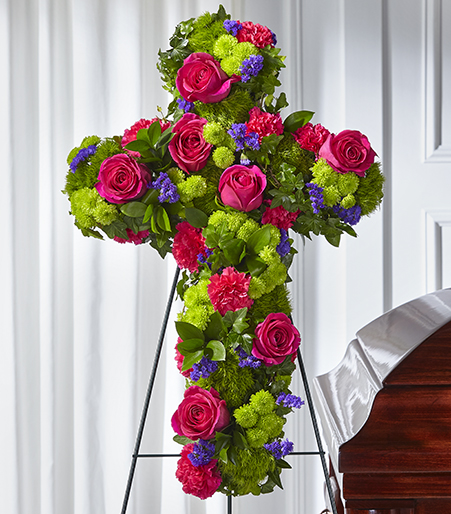 When you order the Tribute Rose Floral Cross from us, you can trust that your arrangement will be delivered on time and in perfect condition. We offer same-day delivery for most orders and our delivery team is professional and respectful.